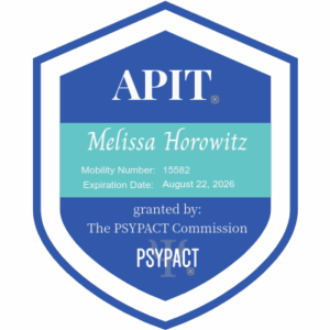 Melissa Horowitz, PsyD, Director of Clinical Training, Body Image and Eating Disorders. Dr. Horowitz is a licensed psychologist in New York, Florida and Connecticut and is certified by PSYPACT to provide telehealth services to clients in states participating in PSYPACT.* Dr. Horowitz is an expert in treating adolescents and adults across the lifespan using cognitive behavior therapy (CBT). Dr. Horowitz specializes in the treatment of eating disorders (binge eating disorder, bulimia nervosa, anorexia nervosa), body-image concerns, and weight-management. She also specializes in the treatment of mood disorders (depression, bipolar disorder), anxiety disorders (generalized anxiety, social anxiety, separation anxiety, panic disorder, phobias), and obsessive compulsive and related disorders (trichotillomania, skin-picking, body-dysmorphic disorder). Further conditions treated by Dr. Horowitz include attention deficit hyperactivity disorder, insomnia, grief, procrastination, perfectionism, and substance misuse. Dr. Horowitz also provides psychological support following a diagnosis of a medical condition. Dr. Horowitz has been intensively trained in dialectical behavior therapy (DBT) and previously provided comprehensive DBT treatment. Dr. Horowitz is not currently offering comprehensive DBT treatment; however, she continues to incorporate DBT principles and approaches into therapy when indicated.